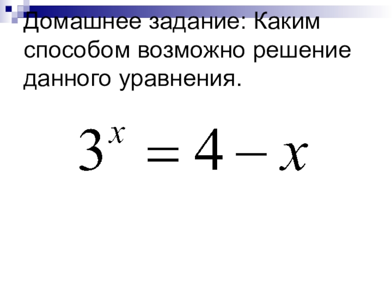 Слайд 7Домашнее задание: Каким способом возможно решение данного уравнения.