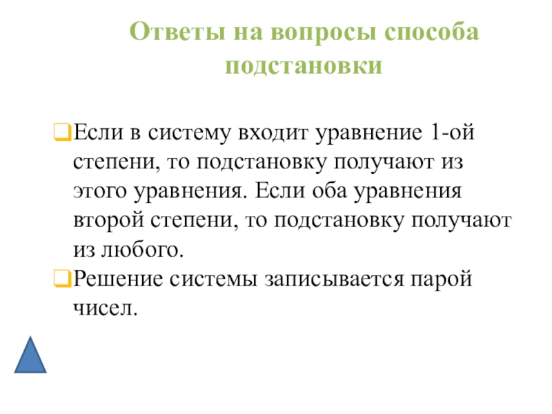Ответы на вопросы способа подстановки