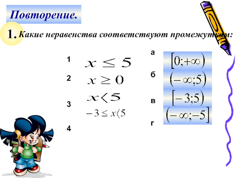 Повторение.1.Какие неравенства соответствуют промежуткам:1234абвг