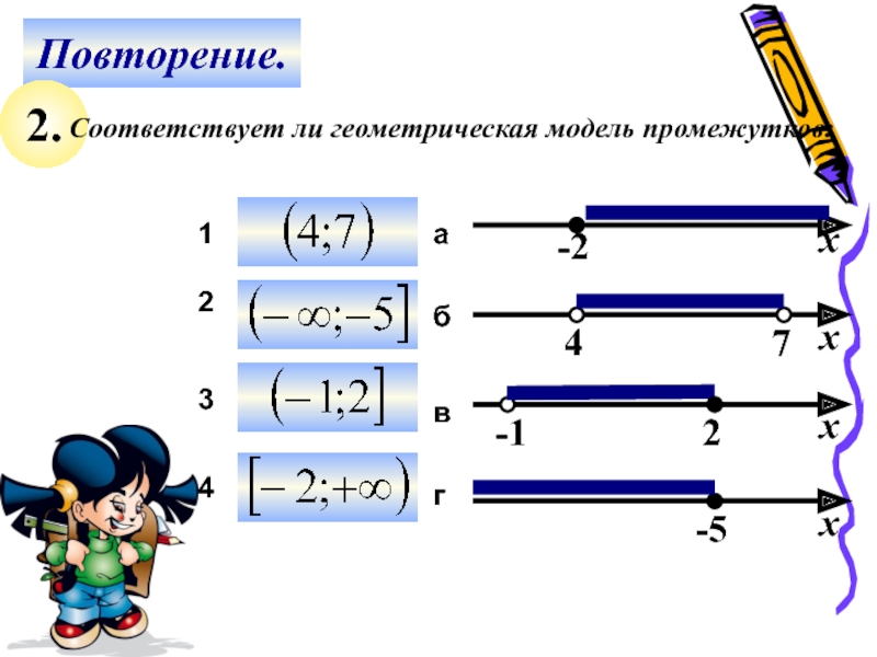 Повторение.2.Соответствует ли геометрическая модель промежутков:1234абвг