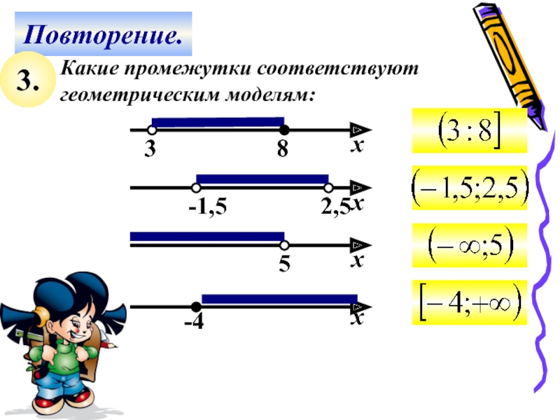 Повторение.3.Какие промежутки соответствуют геометрическим моделям: