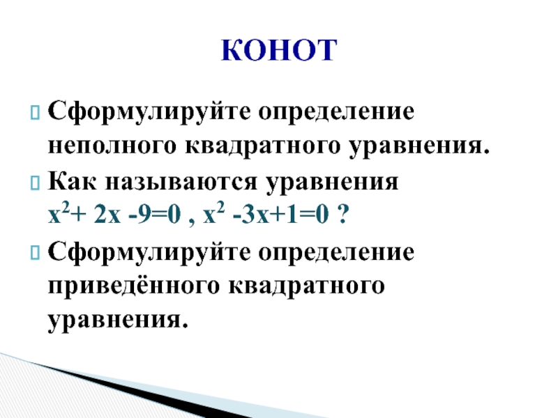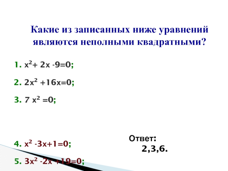 Какие из записанных ниже уравнений являются неполными квадратными?