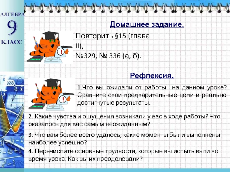 1.Что вы ожидали от работы на данном уроке? Сравните свои предварительные цели и реально достигнутые результаты.