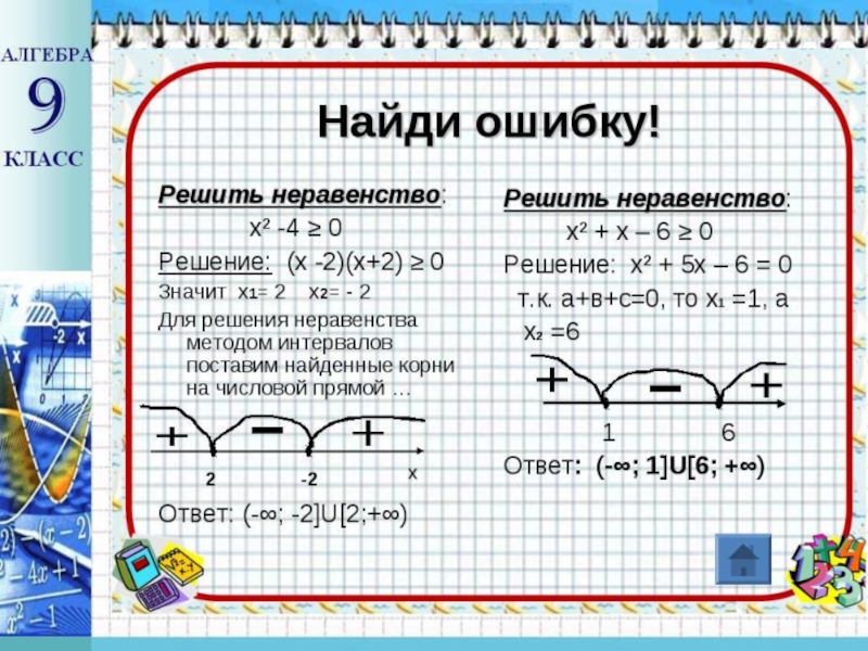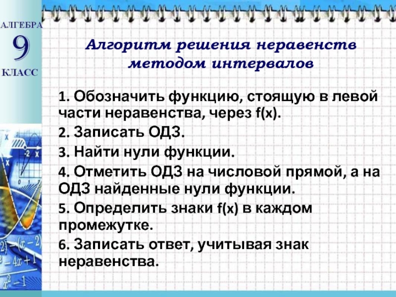 Алгоритм решения неравенств методом интервалов