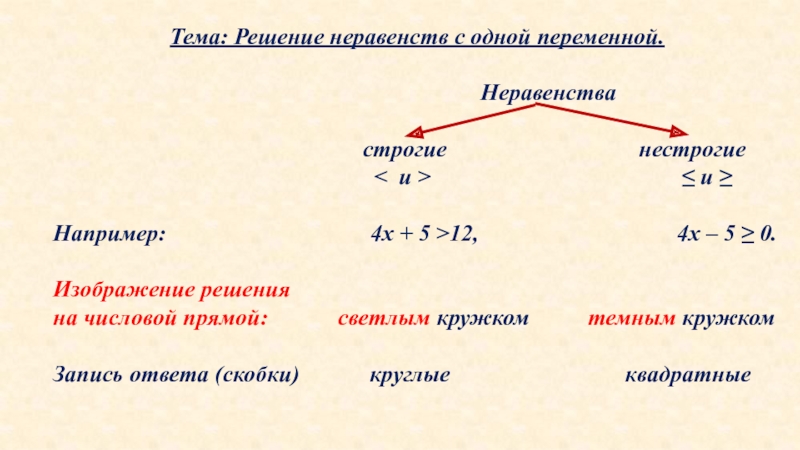 Например: 4х + 5 >12, 4х – 5 ≥ 0.