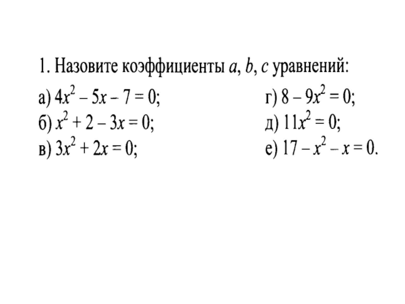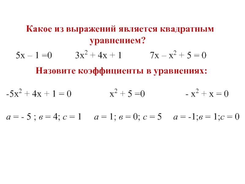-5х2 + 4х + 1 = 0 х2 + 5 =0 - х2 + х = 0