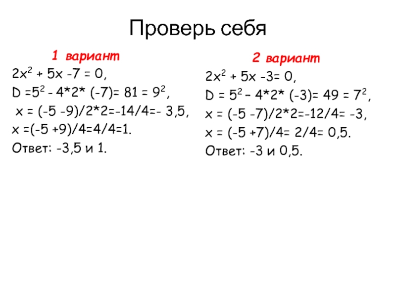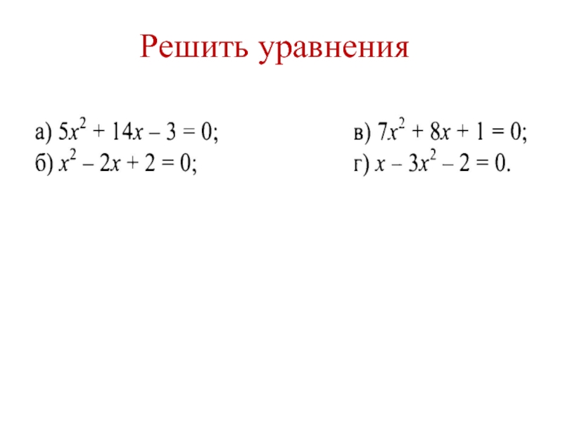 5х2 – 6х + 2 = 0 х2 + 10х + 9 = 0