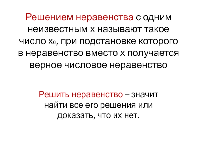 Решить неравенство – значит найти все его решения или доказать, что их нет.