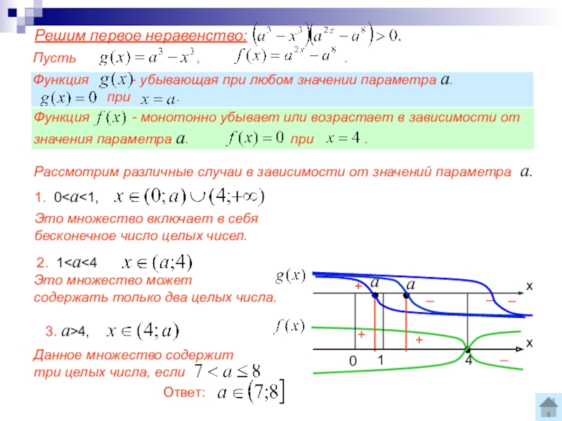 Рассмотрим различные случаи в зависимости от значений параметра а.