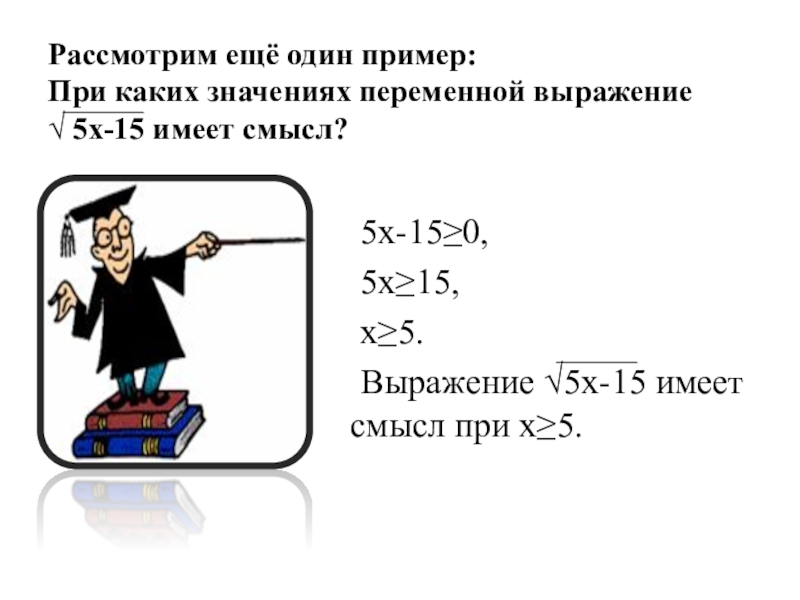 Выражение √5х-15 имеет смысл при х≥5.