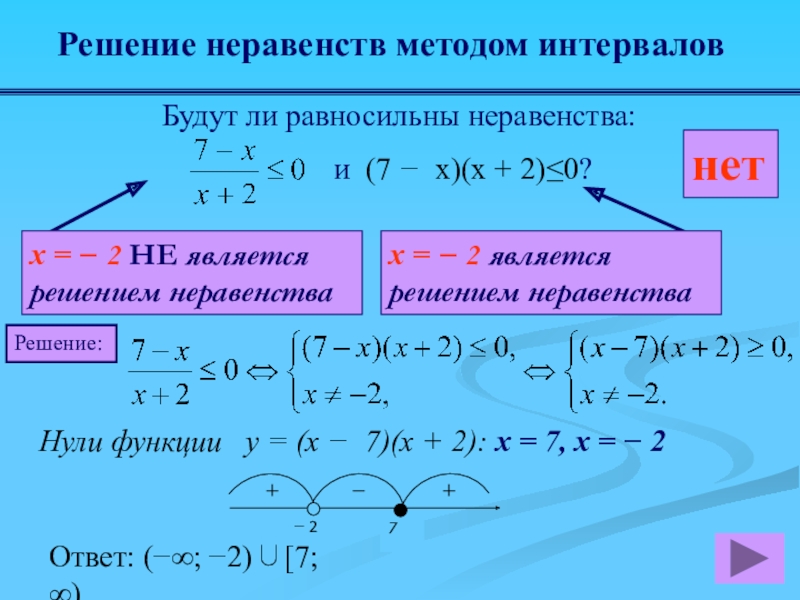 Нули функции y = (x − 7)(x + 2): x = 7, x = − 2