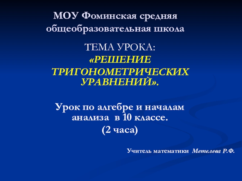 Учитель математики Метелева Р.Ф.