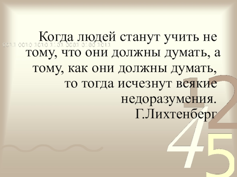Слайд 11Когда людей станут учить не тому, что они должны думать, а