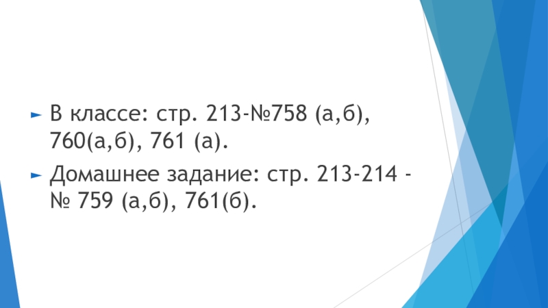Слайд 5В классе: стр. 213-№758 (а,б), 760(а,б), 761 (а).