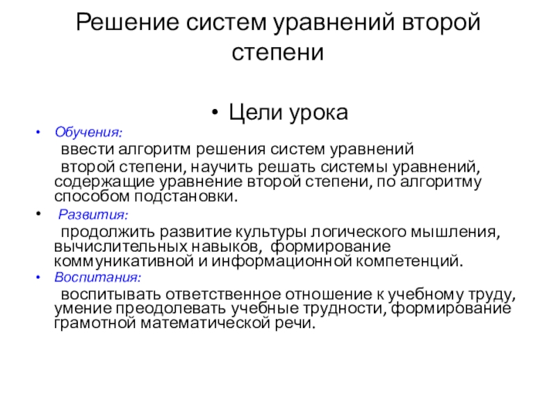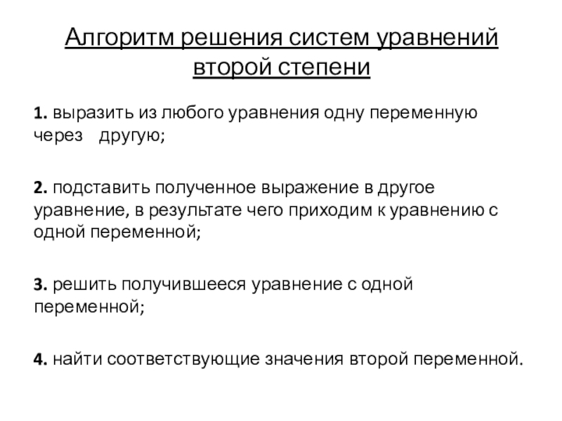 Решение систем уравнений второй степени
