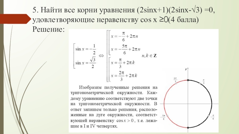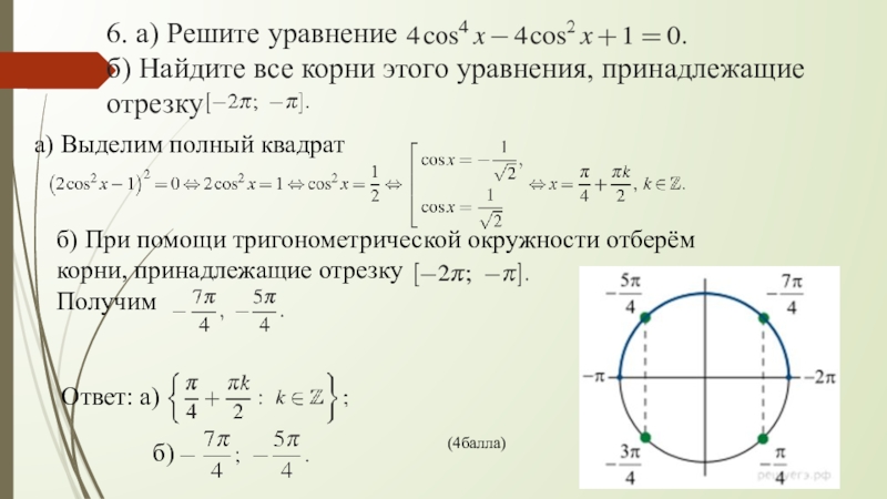 б) При помощи тригонометрической окружности отберём корни, принадлежащие отрезку