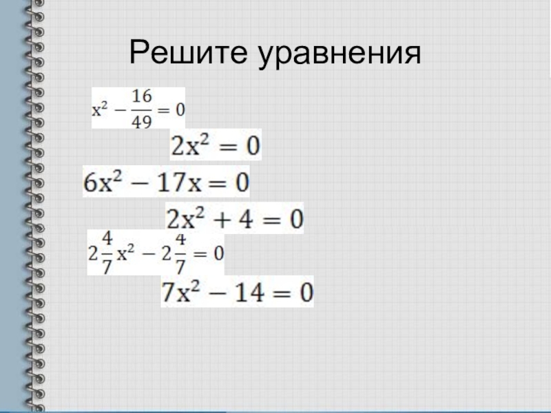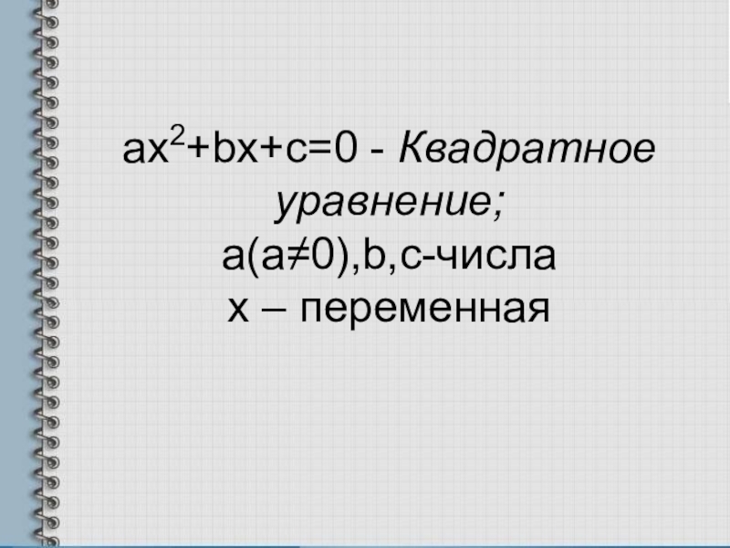 ах2+bх+с=0 - Квадратное уравнение;  а(а≠0),b,с-числа х – переменная