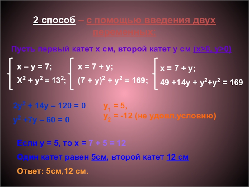 Если y = 5, то x = 7 + 5 = 12