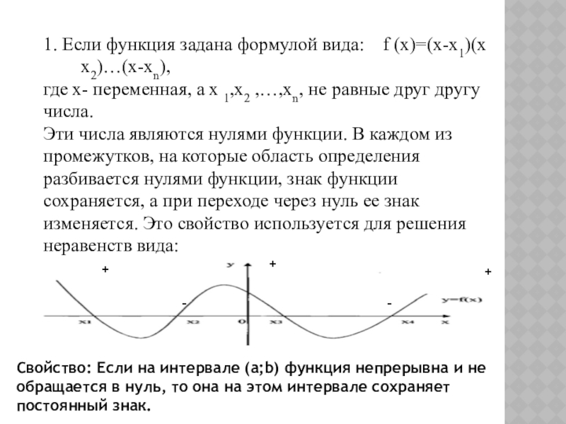 Свойство: Если на интервале (а;b) функция непрерывна и не обращается в нуль, то она на этом интервале сохраняет