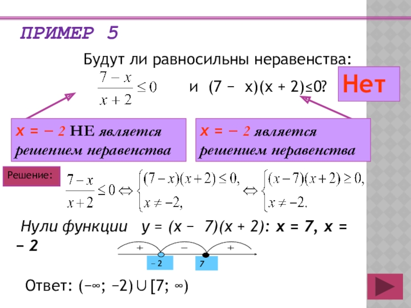 и (7 x)(x + 2)≤0?