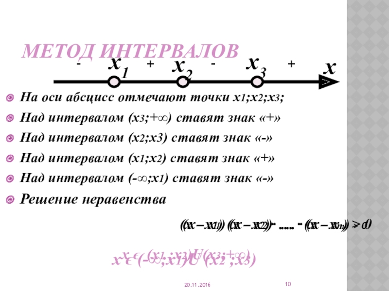 1. А(х)>0, при x ϵ (x1 ;x2)U(x3;+∞)