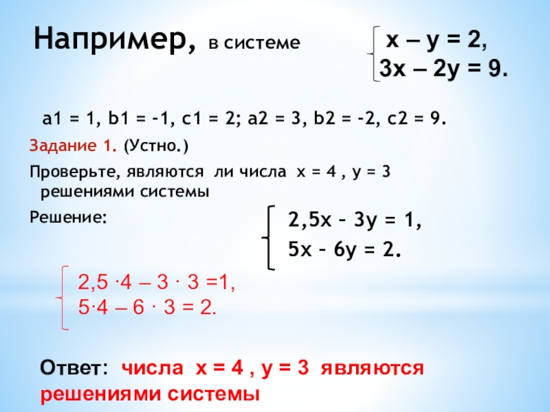 Проверьте, являются ли числа х = 4 , у = 3 решениями системы