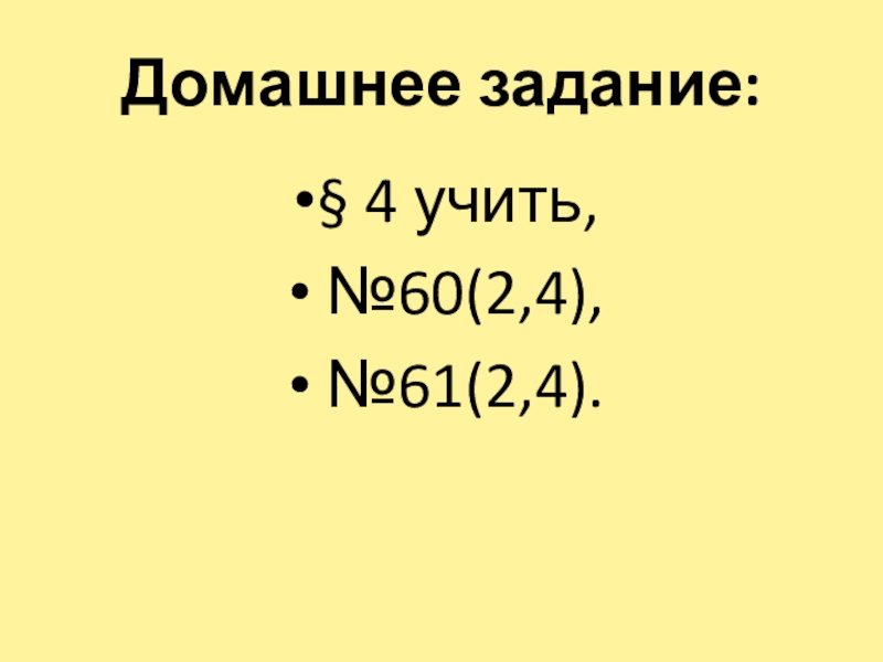 Домашнее задание:§ 4 учить, №60(2,4), №61(2,4).
