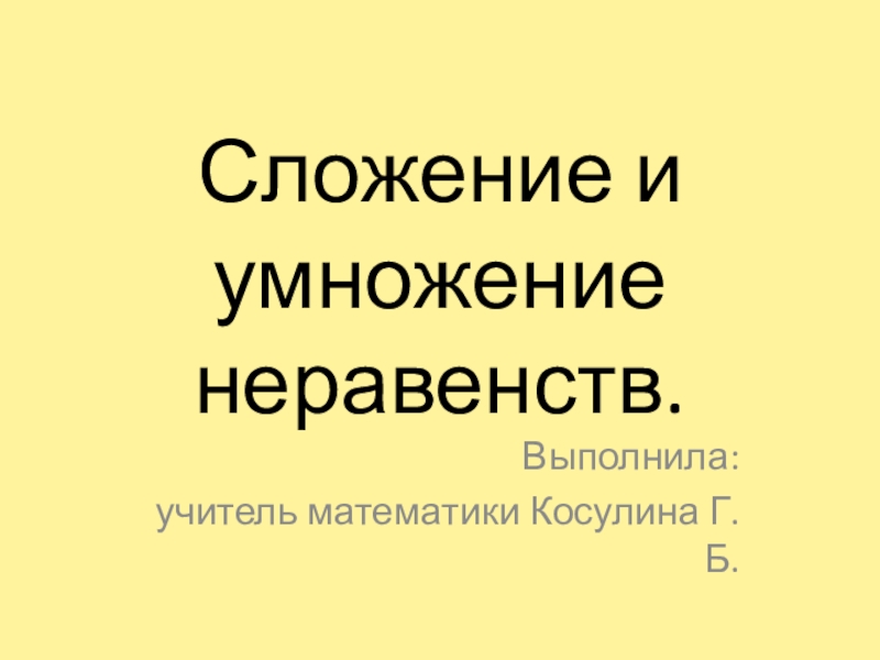 Сложение и умножение  неравенств.Выполнила: учитель математики Косулина Г.Б.