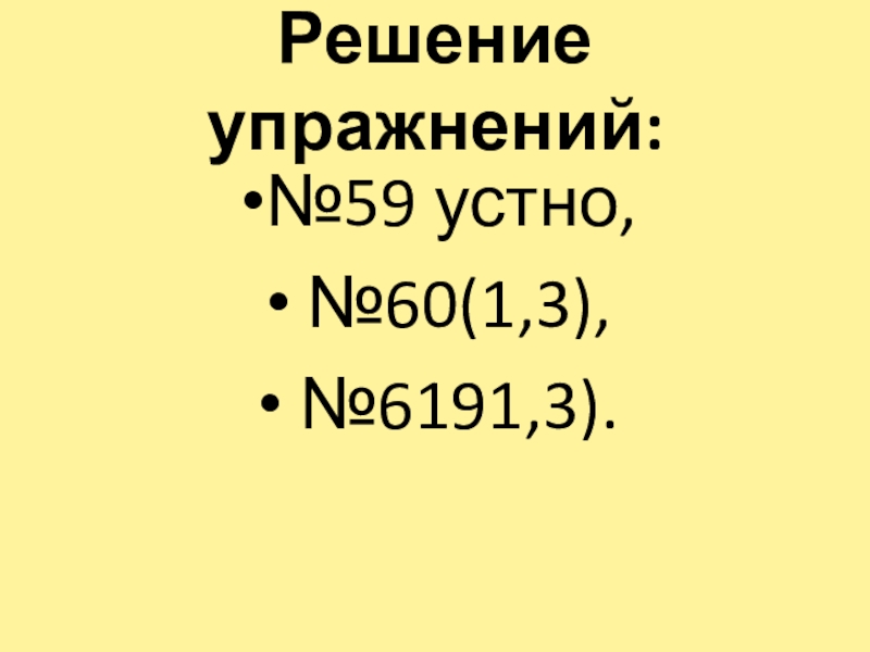 Решение упражнений:№59 устно, №60(1,3), №6191,3).