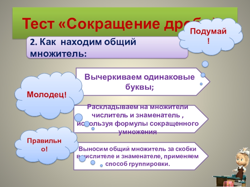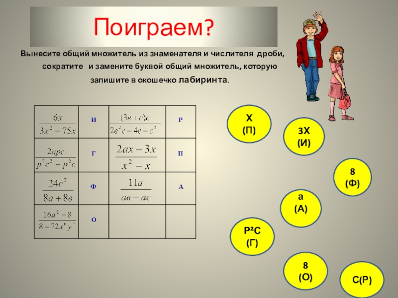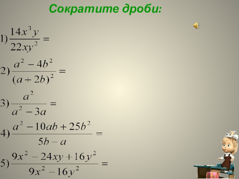 Найти общий множитель для числителя и вычесть его из знаменателя