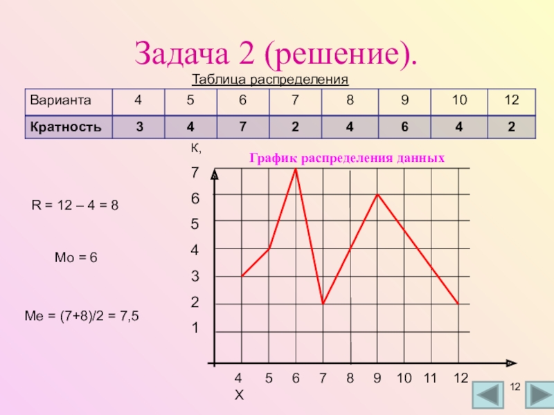 Если среди всех данных конкретного измерения одна варианта встретилась ровно К раз, то число К называют кратностью этой варианты.