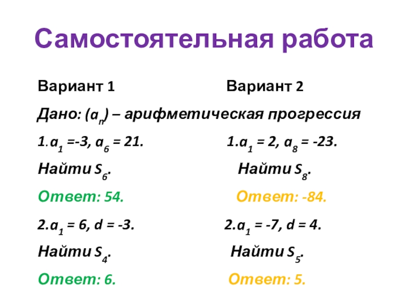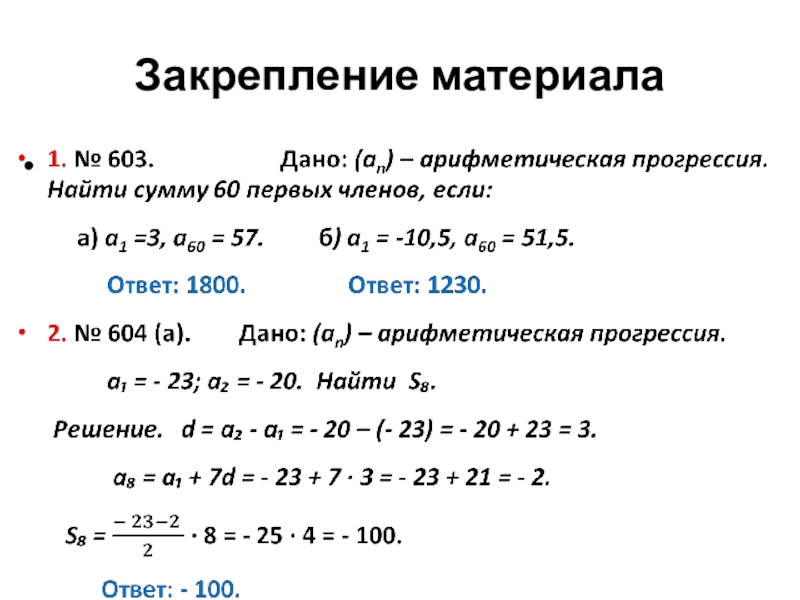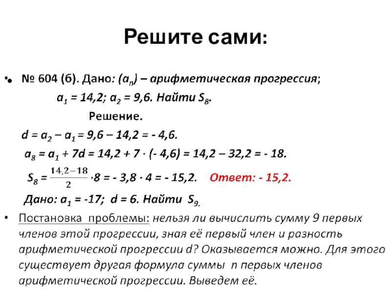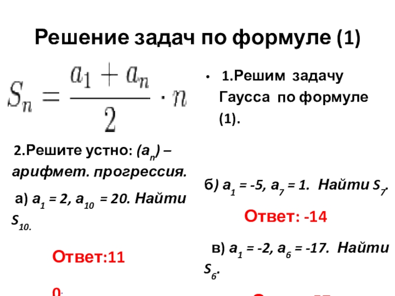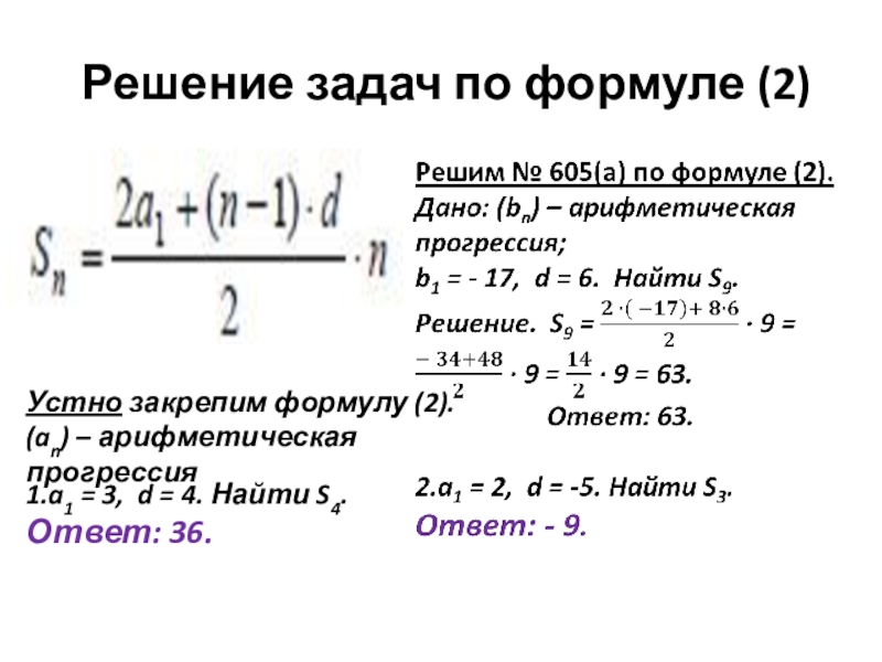2.Решите устно: (аn) – арифмет. прогрессия.