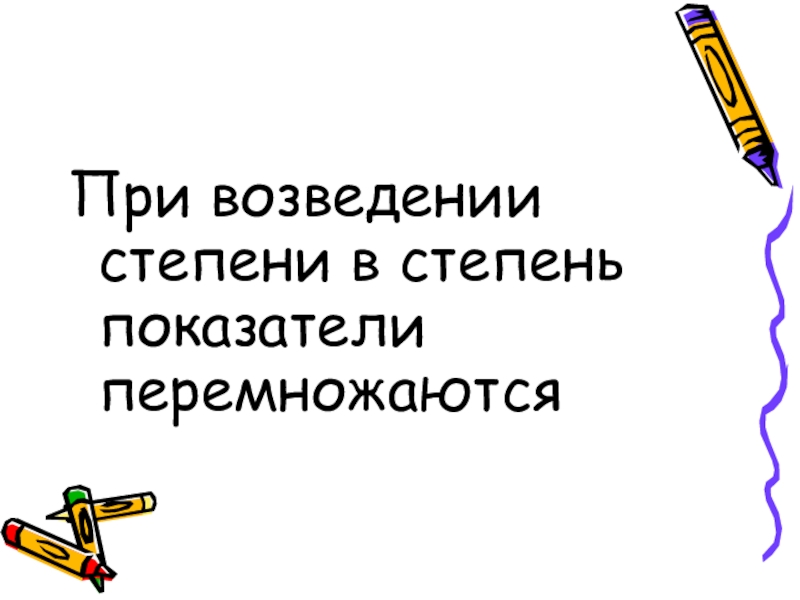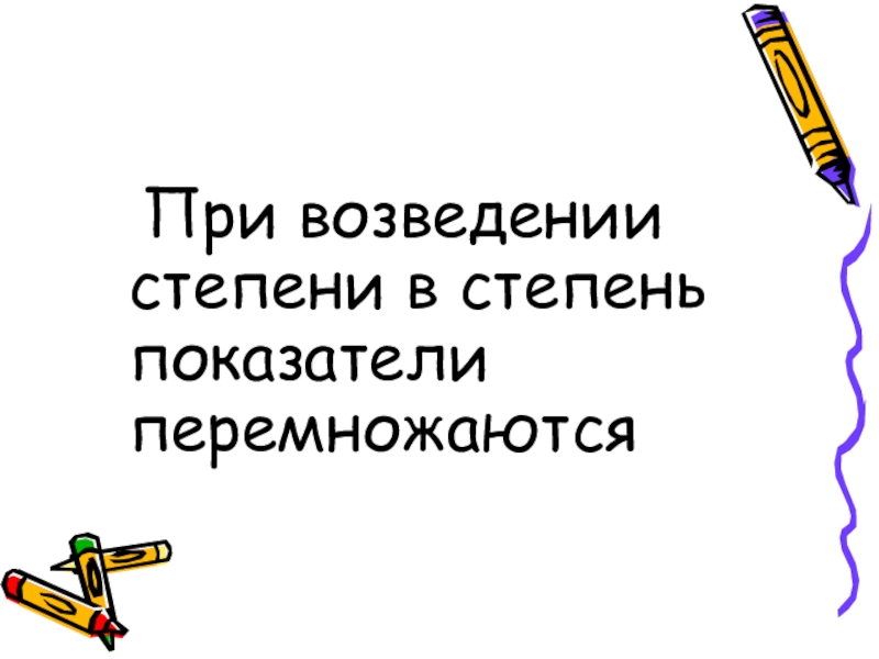 Слайд 14 При возведении степени в степень показатели перемножаются