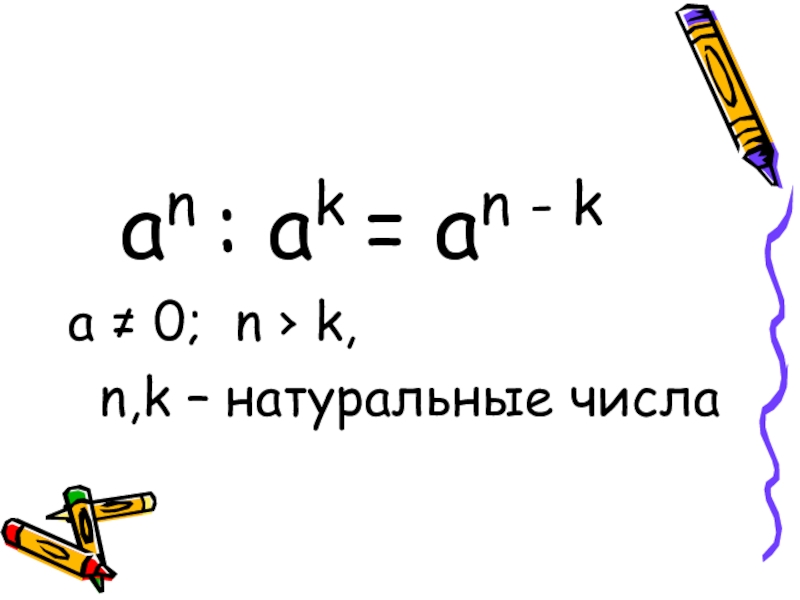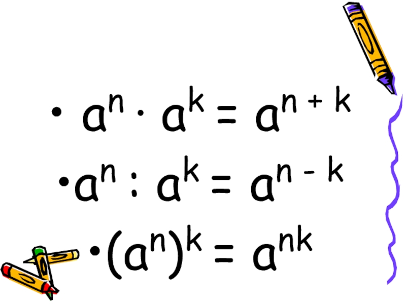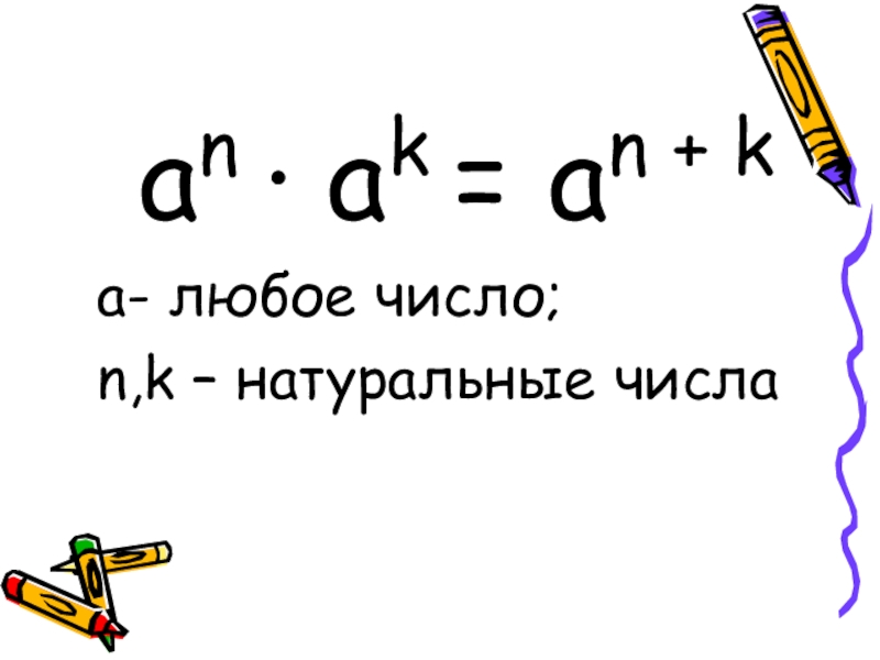 an · ak = an + k a- любое число;n,k – натуральные числа