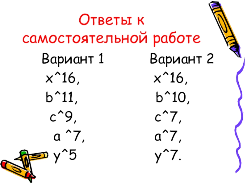 Ответы к самостоятельной работе   Вариант 1      Вариант 2