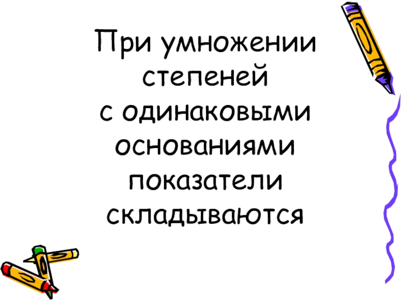Слайд 9При умножении степеней с одинаковыми основаниями показатели складываются