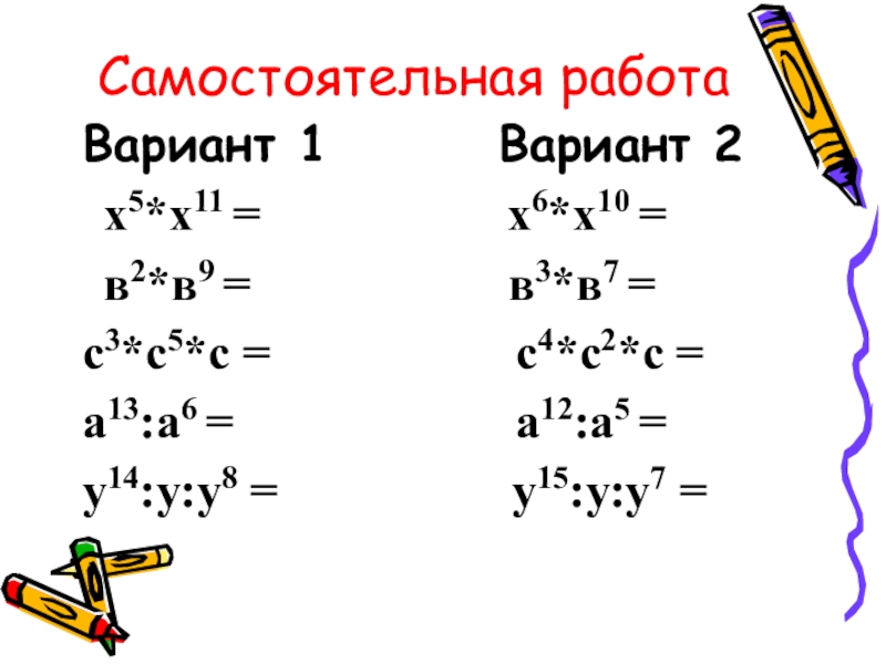 Самостоятельная работаВариант 1    Вариант 2 х5*х11 =      х6*х10 =