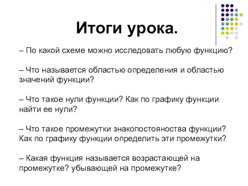 4) Промежутки знакопостоянства функции.