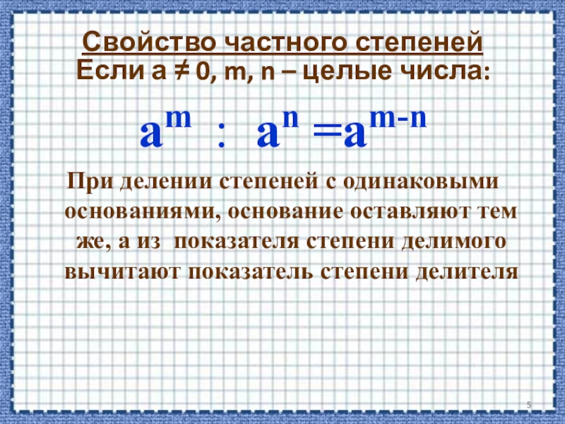 Свойство частного степеней