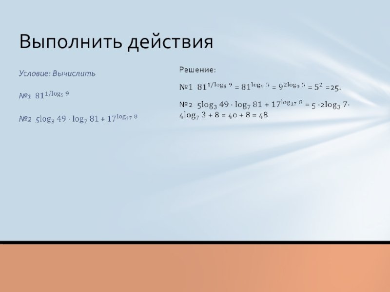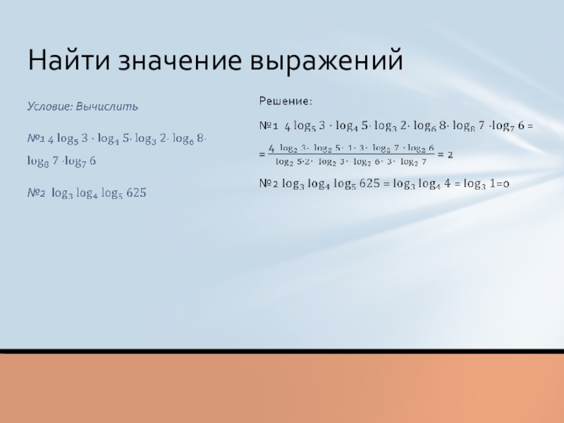 Решение задачСВОЙСТВА ЛОГАРИФМОВ