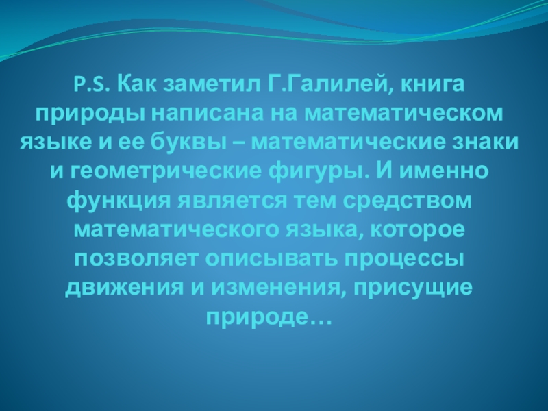 Слайд 15P.S. Как заметил Г.Галилей, книга природы написана на математическом языке и