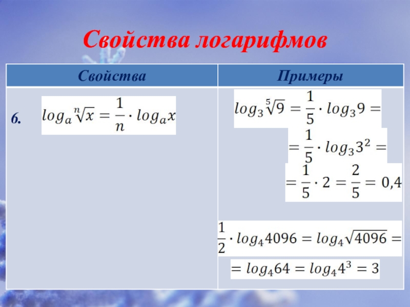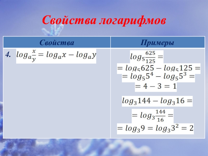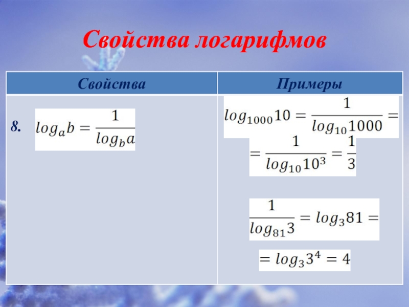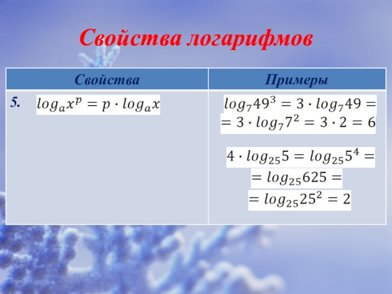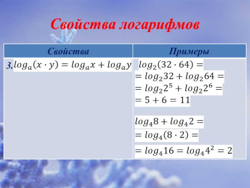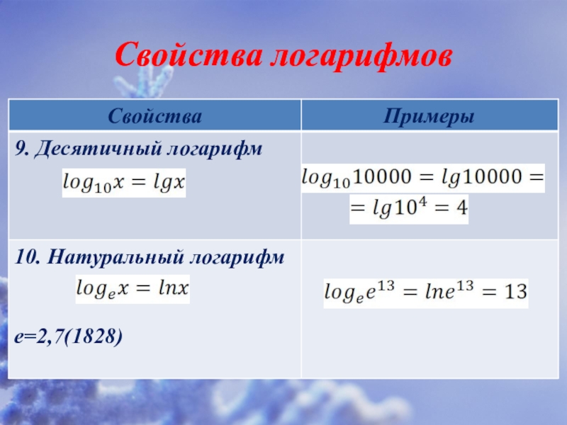 Презентация, доклад по алгебре на тему Свойства логарифмов (11 класс)