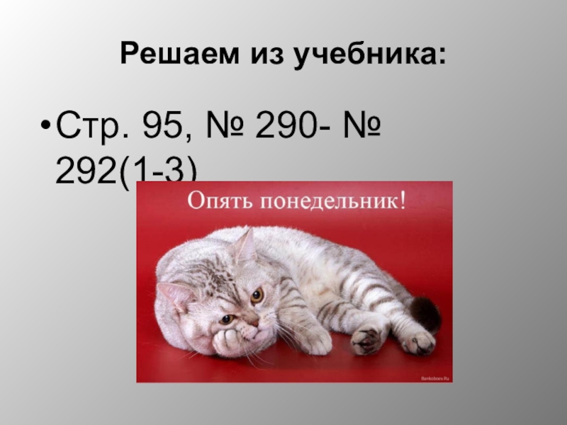 Решаем из учебника:Стр. 95, № 290- № 292(1-3)