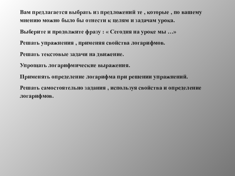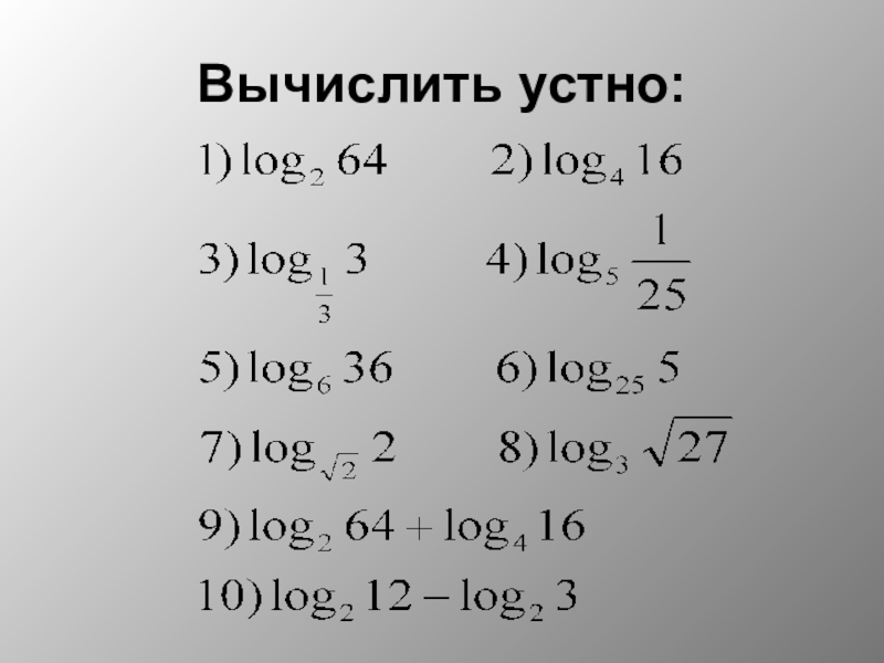 Презентация, доклад по алгебре на тему Свойства логарифмов