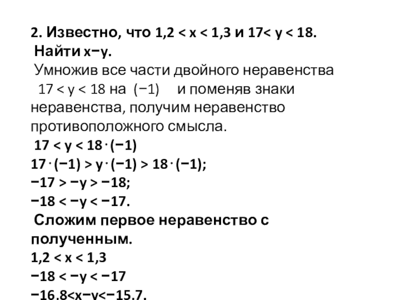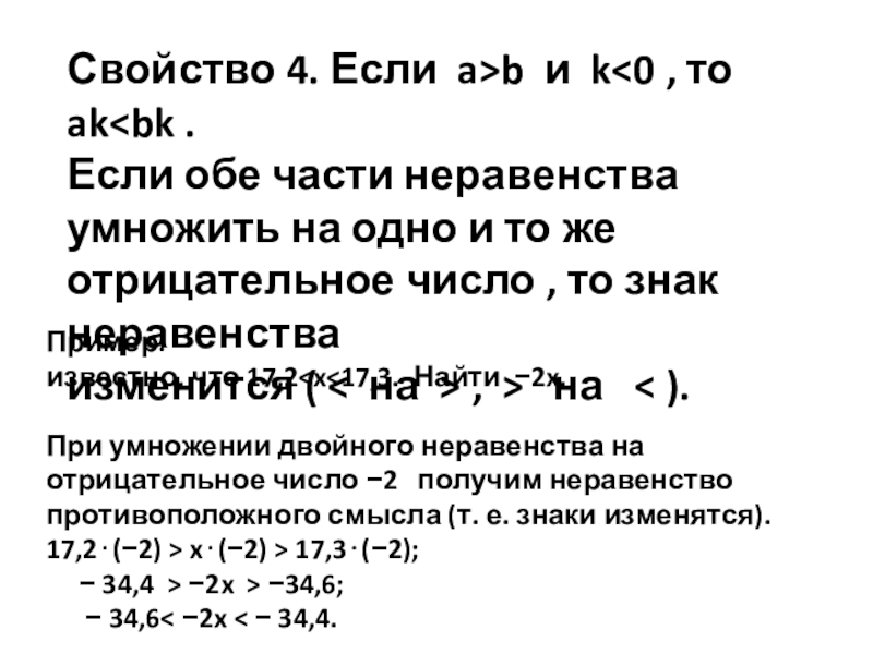 При умножении двойного неравенства на отрицательное число −2 получим неравенство противоположного смысла (т. е. знаки изменятся).
