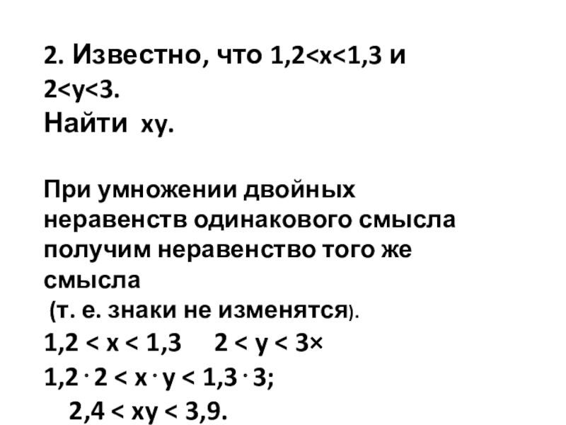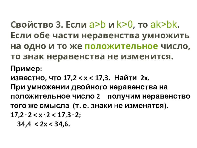 При умножении двойного неравенства на положительное число 2 получим неравенство того же смысла (т. е. знаки не изменятся).