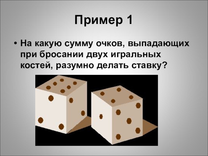 Пример 1На какую сумму очков, выпадающих при бросании двух игральных костей, разумно делать ставку?