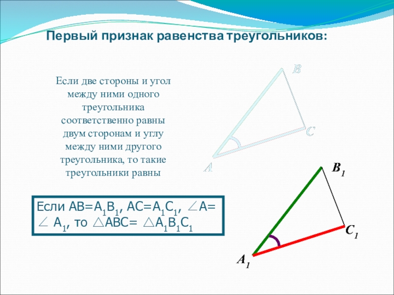 Если AB=A1B1, AC=A1C1, ∠A= ∠ A1, то △ABC= △A1B1C1