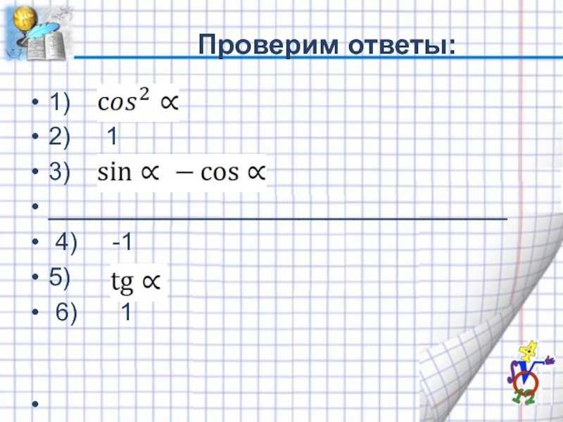 Проверим ответы:1) 2)   13)  _________________________________  4)   -15)    6)   1