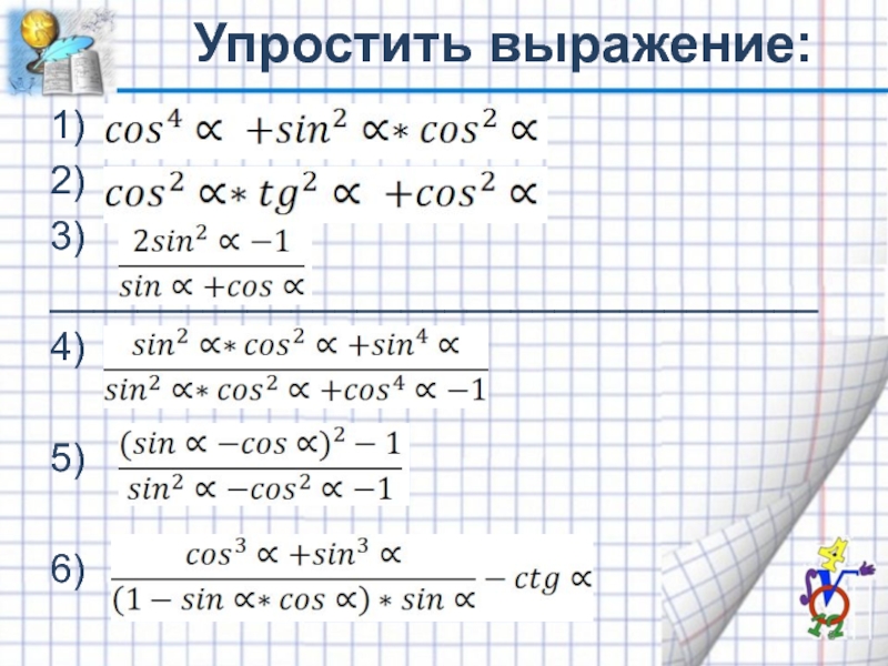 Упростить выражение:1)2)3)___________________________________4)5)6)